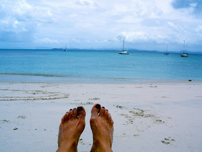 We hiked to Monkey Beach a few beaches over from the main beach and were rewarded by having the beach almost to ourselves. Sorry neighbors- we are pretty loud. We run up and down the beach drawing pictures with sticks in the pristine sand and having sand throwing wars. The dingy here belongs to a Aussie couple who came ashore from their yacht. They live on their yacht and sail all around the world. Sounds like a dream come true, until you factor in the true nature of the open sea and the misery that is feeling seasick (experienced firsthand by most of us on the rough ferry ride today). Not all sandy beaches folks...(but still awesome I'm sure)